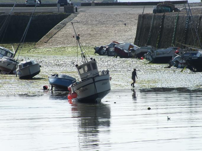 Keywords: low tide ocean boat port wharf reflection trawler fishing coastal fisherman anchorage mooring