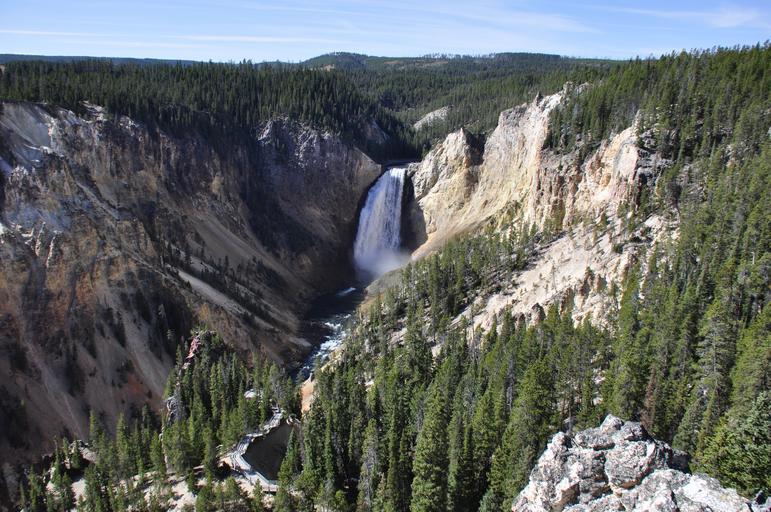 Keywords: stone park yellow tree destination america natural national green white spring river autumn travel wyoming rock power flow stream summer light vertical sun clouds tourist falls tall yellowstone forest waterfall