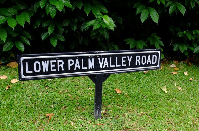 Keywords: singapore botanic gardens lower palm valley road sign public domain publicdomain street sign text outdoor Singapore Botanic Gardens Singapore Botanic Gardens