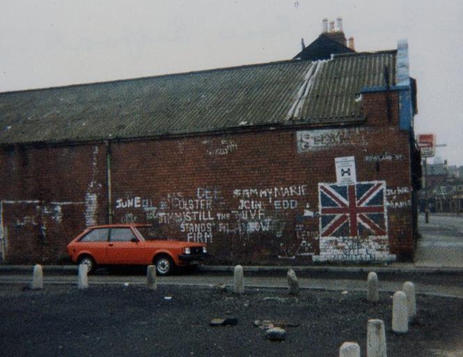 | Keywords: Loyalist mural south Belfast 1981.jpg en Loyalist mural in south Belfast taken in 1981 Murale Lealista a Belfast Irlanda del Nord nel 1981 Own Jeanne boleyn 1981-04 my own work one other on Wikipedia Belfast mural Murals in Belfast April 1981 in Northern Ireland 1981 in Belfast |