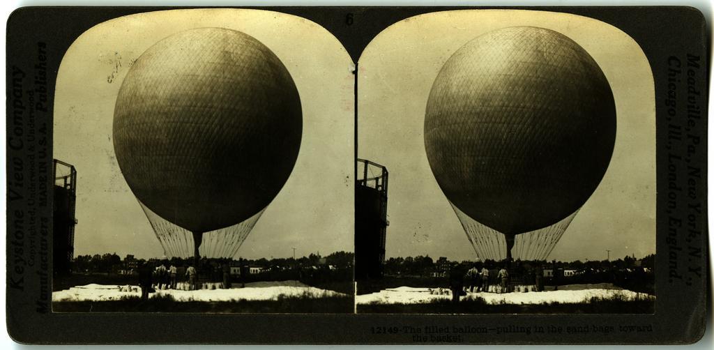 Keywords: lta balloons usa army free balloons armyfreeballoons signal corps balloon ascension signalcorpsballoonascension washington dc (c.1907-1909); balloons; aeronautics washingtondcc19071909balloonsaeronautics photo border "12149. The filled balloon - pulling in the sand bags toward the basket." Silver-print stereoview. Curved card, gray mount. Fully inflated gas balloon. U.S. Army Signal Corps ascension made from the plant of the Washington Gas Light Company (12th and M Streets, S.E.), circa 1907-1909. Original: siris-archives.si.edu/ipac20/ipac.jsp?&profile=all&am... "12149. The filled balloon - pulling in the sand bags toward the basket." Silver-print stereoview. Curved card, gray mount. Fully inflated gas balloon. U.S. Army Signal Corps ascension made from the plant of the Washington Gas Light Company (12th and M Streets, S.E.), circa 1907-1909. Original: siris-archives.si.edu/ipac20/ipac.jsp?&profile=all&am... |