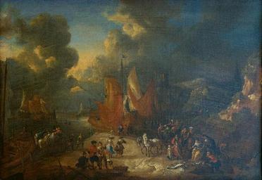 | Keywords: Lucas Smout the Younger and Pieter Bout - Harbour and Fish Market.jpg Artwork Creator Lucas Smout the Younger Creator Pieter Bout en Harbour and Fish Market Unloading the Catch at the Beach of Scheveningen 1686 - 1713 http //www scheveningen1813-2013 nl/strandschilders/17001800/smout/2smout/index html Oil canvas cm 40 57 Institution Musée des beaux-arts de Quimper Pieter Bout painted the figures Other versions PD-old-100 Lucas Smout the Younger Pieter Bout Paintings in Musée des Beaux-Arts de Quimper |