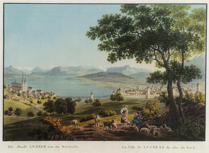 Keywords: LucerneHHKellerI.jpg »Die Stadt LUZERN von der Nordseite « Colorirte Radirung Hans Heinrich Kellers vom Steinbock 16 cm × 23 3 cm Den Turm der bey der Hofbrücke etwa in der Mitte des Bildes zů Å¿ehn iÅ¿t gab es nicht er ähnlet aber jenem neben der Kapellbrücke über den ReußfluÅ¿s bey deſſen Einfluſſe in den LuzernerÅ¿ee »The City of LUCERNE North View « Colored Etching by Hans Heinrich Keller vom Steinbock 16 cm × 23 3 cm The Tower Å¿een beÅ¿ide the Bridge over the Bay Hofbrücke did not exiÅ¿t in this Place but Å¿eems Å¿imilar to the one actually Å¿tanding next to the Chapel Bridge on the Mouth of the River Reuß into Lake Lucerne »La Ville de LUCERNE du côte du Nord « Gravure à l ™eau forte coloriée de Hans Heinrich Keller vom Steinbock 16 cm × 23 3 cm La tour Å¿ur la baie au centre de l ™image n ™existait pas mais resÅ¿emble à celle vraiment Å¿ituée auprès de la Pont de la Chapelle à l ™embouchure de la Reuß dans le Lac de Lucerne Markus Riek/Felix Rickenbacher Der Vierwaldstättersee auf alten Ansichten 1780 ”1880 Souvenir du Lac des quatre Cantons Schwyz 1998 p 21 1810 Hans Heinrich Keller vom Steinbock 1778 ”1862 PD-old-100-1923 Historical images of Lucerne Lake Lucerne in art 1810s etchings 19th-century works in Switzerland Heinrich Keller Uploads by User Abderitestatos ImageNote 1 2314 2334 122 271 5414 3964 2 Fictiver Turm bey der Hofbrücke Imaginary Tower next to the Long Bridge Tour imaginaire à côté du Pont Long ImageNoteEnd 1 ImageNote 2 237 1874 487 507 5414 3964 2 Kirch St Leodegars im Hof Church of St Leodegar within the Court ÉgliÅ¿e Saint Léger dans la Cour ImageNoteEnd 2 |