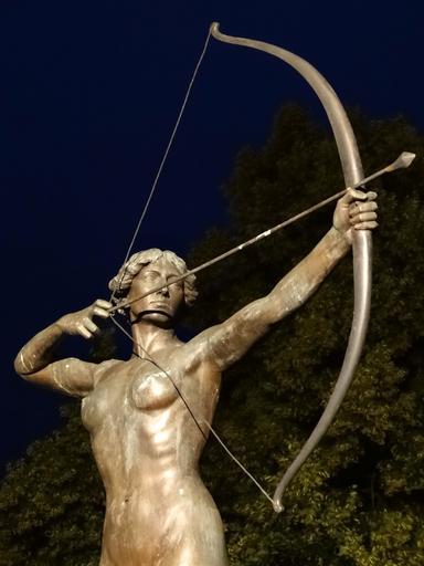 Keywords: luczniczka bydgoszcz statue sculpture figure artwork park bow and arrow night