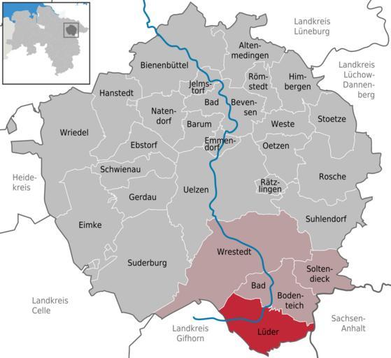 Keywords: Lüder in UE.svg DeLocMaps Lüder Lüder Lüneburger Heide Landkreis Uelzen District of Uelzen Uelzen district L'arrondissement d'Uelzen Arrondissement d'Uelzen Niedersachsen Lower Saxony Basse-Saxe TUBS/Translation Adobe Illustrator <br/> based on <br/> File Lower Saxony location map svg NordNordWest<br/> http //www geodaten niedersachsen de/master/C17415881_N17416128_L20_D0_I15258844 htm Niedersachsen Viewer<br/> http //www geomdk niedersachsen de/data/lgn/info/dgm5_lk360 pdf Koordinierungsstelle GDI-NI beim Landesbetrieb Landesvermessung und Geobasisinformation Niedersachsen DGM 5 Verfügbarkeit Landkreis/Stadt Landkreis Uelzen<br/> File Locator map UE in Lower Saxony svg TUBS 2010-10-05 Hagar66 based on work of TUBS Hagar66/licensesection Attribution TUBS/Credits Locator maps of municipalities in Landkreis Uelzen Lüder Lüneburg Heath