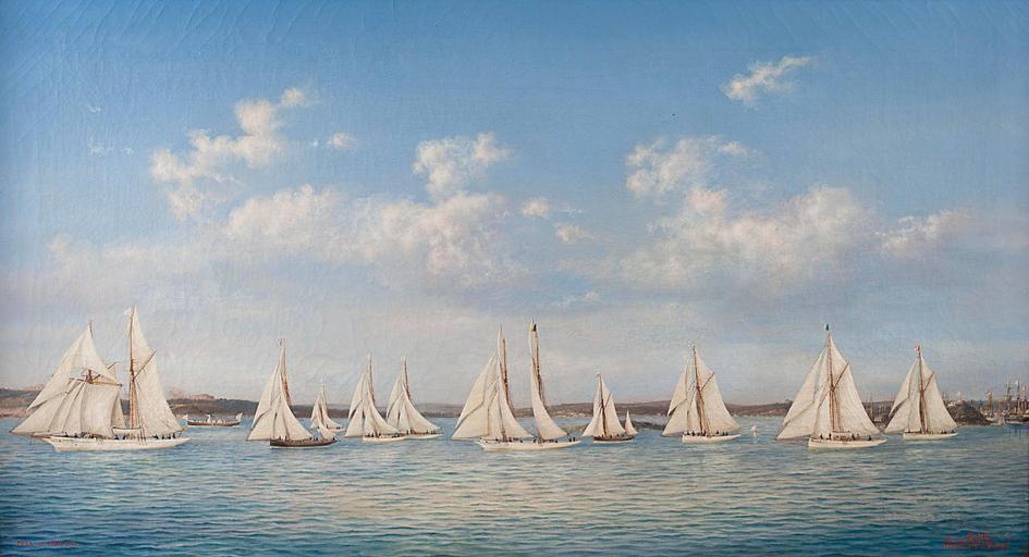 | Keywords: Ludwig Rubelli von Sturmfest Segelregatta 1892.jpg Segelregatta vor Pula Pola 10 April 1892 lower left place/date L de Rubelli signature lower right Gorizia place lower right 1892 date lower right n 451 number lower right oil on canvas ca 55 x 101 cm http //www dorotheum com 1892 Ludwig Rubelli von Sturmfest PD-old-100 Images from Dorotheum Sailing in art Ludwig Rubelli von Sturmfest 1892 paintings Historical images of Pula Regatta sailing | ||||