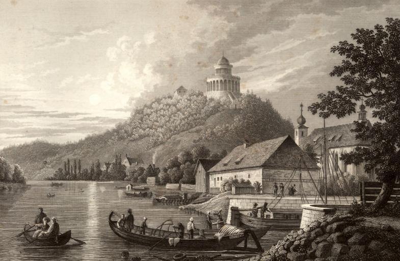 Keywords: Ludwigskanal Alexander Marx 011.jpg Donau bei Kehlheim sic mit der Befreiungshalle Stahlstich von Alexander Marx aus dem Buch Pittoreske Ansichten des Ludwig-Donau-Main-Kanals Gezeichnet auf Stahl gestochen und herausgegeben von Alexander Marx 1845 Kupferstecher in Nürnberg Das Bild zeigt noch den Originalentwurf der 1863 fertiggestellten Befreiungshalle von Friedrich von Gärtner http //www hansgruener de/kanal htm - Hans Grüner DER ALTE KANAL Creator Alexander Marx 1845 PD-old-100 Ludwig-Donau-Main-Kanal Einleitung Donau Historical images of the Ludwig Canal Steel engravings Friedrich von Gärtner Befreiungshalle Danube in Kelheim Bavaria in the 1840s 1845 in Germany Alexander Marx painter |