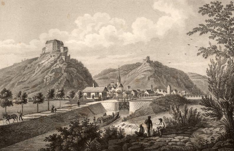 Keywords: Ludwigskanal Alexander Marx 014.jpg Riedenburg mit Einfluß der Altmühl in den Kanal Stahlstich von Alexander Marx aus dem Buch Pittoreske Ansichten des Ludwig-Donau-Main-Kanals Gezeichnet auf Stahl gestochen und herausgegeben von Alexander Marx 1845 Kupferstecher in Nürnberg Das Bild zeigt die Schleuse 7 von Osten http //www hansgruener de/kanal htm - Hans Grüner DER ALTE KANAL Creator Alexander Marx 1845 PD-old-100 Schleuse 7 Ludwig-Donau-Main-Kanal Historical images of the Ludwig Canal Steel engravings History of Riedenburg Altmühl Towing with horses Bavaria in the 1840s 1845 in Germany Panoramics in Landkreis Kelheim Riedenburg Alexander Marx painter V-shaped valleys in Germany |