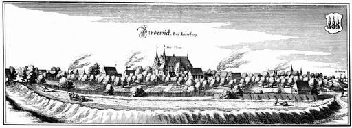 Keywords: Lueneburg-1654-Merian-Bardowick.jpg Source Matthäus Merian Cityview Engravings of Topographia Braunschweig Lüneburg Bardowick Bardowick