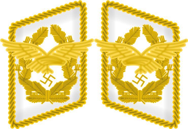 | Keywords: Luftwaffe collar tabs Generaloberst 3D.svg de Dienstgradabzeichen der deutschen Wehrmacht hier Kragenspiegel Generaloberst Luftwaffe OF-9 bis 1945 Die Waffenfarbe Weiß fand Anwendung bei allen Generalen - und beim Generalfeldmarschall der Luftwaffe en Rang insignia of the German Wehrmacht here gorget patches Colonel-general Luftwaffe Four-star rank OF-9 to 1945 The Corps colour White was used by all general officers and by Generalfeldmarschall of the German Luftwaffe ru Знаки азличия немецкогоВе махтa сдезь петлицы Гене ал-полковник BBC ОФ-9 до 1945г Ко пусный цвет Белый был испольсован у всех гене алов а также у Гене ал-фельдма шал емецкогое люфтваффе own 2010-01-20 Luigi Chiesa Military rank insignia of the Luftwaffe Wehrmacht collar 01-02 Reichsadler of the Third Reich |