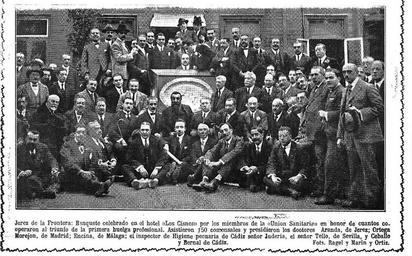 | Keywords: Luis Encina Candebat 1919.jpg es Jerez de la Frontera Banquete celebrado en el hotel «Los Cisnes» por los miembros de la «Union Sanitaria» en honor de cuantos cooperaronal triunfo de la primera huelga profesional 1919-12-25 http //hemerotecadigital bne es/issue vm id 0005468827 page 14 search encina lang es Digitized by the Biblioteca Nacional de España other versions Custom license marker 2015 08 21 PD-old Uploaded with UploadWizard Familia Encina España | ||||
