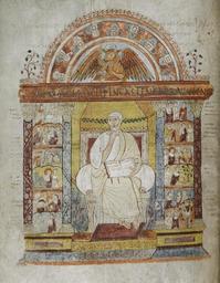 Keywords: Luke St Augustine's Gospels Corpus Christi Cambridge MS 286.jpeg Illuminated miniature of Luke with a quotation from Sedulius' Paschale carmen inscribed in uncial letters above his head St Augustine's Gospels Corpus Christi College Cambridge MS 286 folio 129r The manuscript was probably started in Italy with later additions at St Augustine's Abbey Canterbury https //parkerweb stanford edu/parker/actions/thumbnail_view do ms_no 286 page 129V size print Digitised manuscript Stanford University Late 6th century Unknown scribe PD-art PD-old Augustine Gospels Parker Library Corpus Christi College Cambridge Saint Augustine of Canterbury |