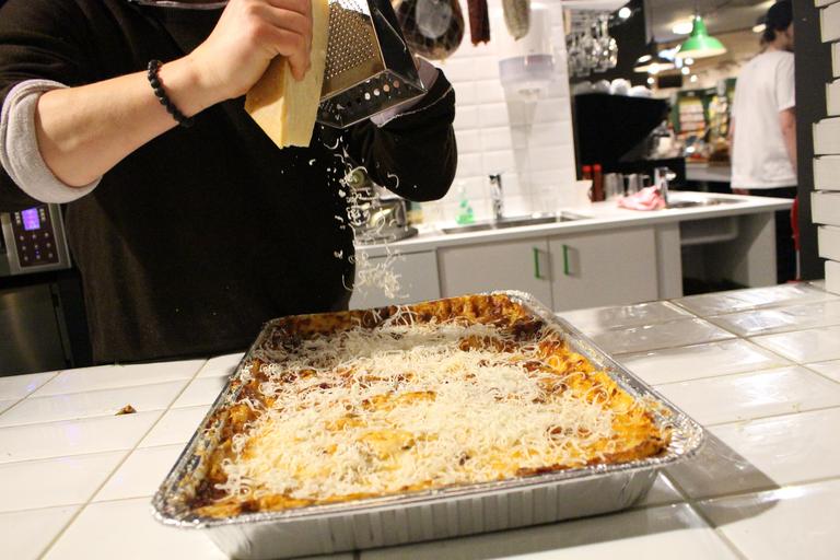 Keywords: lunch food pizza dinner restaurant parmesan cheese