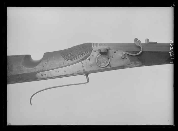 Keywords: Luntlåsbössa, dubbelhake (mickhake) Suhl, 1598 - Livrustkammaren - 69807.tif Rund pipa av stål åttsidig kammare slätborrat lopp Svansskruv av stål På pipbasens tre övre faser profilerade band På kammarens ovansida etsat 1598 och blommor stämpel N M under två klöverblad samt därnedanför DAVS LRK vägl 1921 203 jfr Stöckelnr 4157 Nürnberg På kammarens sidor SVL LRK vägl 1921 410 jfr Stöckelnr 1641ff samt höna LRK vägl 1921 184 jfr Stöckelnr 1687f Fyra profilerade ränder där kammaren övergår i den runda delen Tandad hake av stål på pipans undersida 470 mm frånmynningen b 40 mm l 140 mm <br/>Riktmedel Inlaxat ståndsikte på klacken en skålformig grop d 21 mm Rakt inlaxat stolpsikte av stål <br/>Fästning Fyra häften Pipan fäst med krysskruv underifrån samt tre pipstift av trä <br/><br/>Luntlås med plant låsbleck l 310 mm stämplat SVL på bakre delen Stöckelnr 1672 Under fängpannan en ring med infälld mässingsplåt med pressad dubbelörn och bokstäverna G K Framför den runda plattan en stämpel H G över krona vägl 1921 382 Stöckelnr 2857 Rektangulär fängpanna med fasade kanter lock som skjuts framåt när avtryckaren trycks in Starkt s-formigt svängd hane luntklämma med graverat öga Klämskruv saknas <br/>Fästning Tre låsskruvar <br/>Lång baktill nedåtböjd hävstångsavtryckare <br/><br/>Svartbetsad helstock av tidig tysk typ rak kolv utan vinge nedskuret tumläge På kolvsidorna snidad mansprofil inom rund lagerkrans Snidade bladslingor på kolvens bakre del på undersidan samt runt svansskruvbladet Snidade bladrankor runt låsskruvarna Vid bakre låsskruven en snidad kvinnoprofil original caption 1598 wood e3 - eldvapen - stock material trä - steel e1247 - eldvapen - pipa lås riktmedel och beslag material stål - brass e6 - eldvapen - låsdekor material mässing size mm 110 g 16250 size mm 1600 pipa size mm 2150 LRK Gustav II Adolf av Sverige Brunkeberg 1975 N M DAVS klöverblad anv e1 - eldvapen - pipa; anonym pipsmed G K anv e2 - eldvapen - lås; anonym låssmed H G krona Stöckelnr 2855-2857 anv e2 - eldvapen - lås; anonym låssmed höna Stöckelnr 1702 anv e1 - eldvapen - pipa; anonym kontrollör SVL Stöckelnr 1672 anv e1 - eldvapen - pipa; anonym kontrollör N M DAVS klöverblad anv e1 - eldvapen - pipa; anonym pipsmed G K anv e2 - eldvapen - lås; anonym låssmed H G krona Stöckelnr 2855-2857 anv e2 - eldvapen - lås; anonym låssmed höna Stöckelnr 1702 anv e1 - eldvapen - pipa; anonym kontrollör SVL Stöckelnr 1672 anv e1 - eldvapen - pipa; anonym kontrollör place of origin original filename LN_B10338_013218 39827 inventory number LRK 3250 69807 CC0 Luntlåsbössa dubbelhake mickhake Suhl 1598 - Livrustkammaren - 69807-negative tif Matchlock muskets images from Livrustkammaren Media contributed by LSH dim-with multiple size templates Media contributed by LSH 2013-10 |