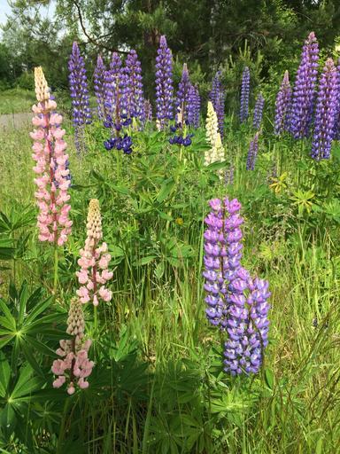 Keywords: lupinien flowers meadow pink purple green flora mountain flowers wild plants