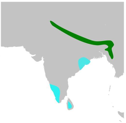 Keywords: LusciniaBrunneaMap.svg en Distribution of Larvivora brunnea based on Salim Ali Ripley's Handbook of the birds of India and Pakistan <br>Green summer<br>Blue winter own L Shyamal 2010 Larvivora brunnea