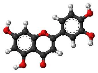 Keywords: Luteolin molecule ball.png Ball-and-stick model of the luteolin molecule a flavone found in mostly in leaves Color code 505050 Carbon C black<br> F0F0F0 Hydrogen H white<br> F51E1E Oxygen O red<br> 2011-08-04 own DS Visualizer Jynto talk Space-filling version cc-zero Images by Jynto Luteolin |