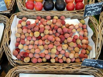 Keywords: lychees farmers market gourmet food fruit exotic fresh produce marketplace sale viktualienmarkt munich germany
