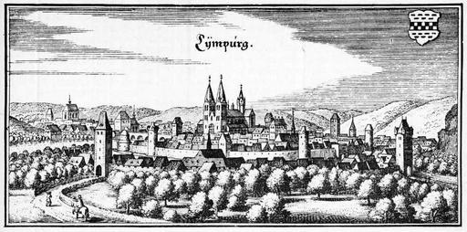 Keywords: Lympurg (Merian).jpg Historic views of Limburg an der Lahn Limburg an der Lahn in the 17th century Coats of arms from Limburg an der Lahn