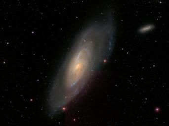 Keywords: messier 106 messier106 m106 Credit: SDSS/Giuseppe Donatiello J2000 RA 12h 18m 57.5s Dec +47° 18′ 14″ Messier 106 (NGC 4258) is a spiral galaxy in Canes Venatici. It was discovered by Pierre Méchain in 1781. M106 is at a distance of about 23 million light-years. It is also a Seyfert II galaxy. Due to x-rays and unusual emission lines detected, it is suspected that part of the galaxy is falling into a supermassive black hole in the center. NGC 4217 is a possible companion galaxy. Credit: SDSS/Giuseppe Donatiello J2000 RA 12h 18m 57.5s Dec +47° 18′ 14″ Messier 106 (NGC 4258) is a spiral galaxy in Canes Venatici. It was discovered by Pierre Méchain in 1781. M106 is at a distance of about 23 million light-years. It is also a Seyfert II galaxy. Due to x-rays and unusual emission lines detected, it is suspected that part of the galaxy is falling into a supermassive black hole in the center. NGC 4217 is a possible companion galaxy.