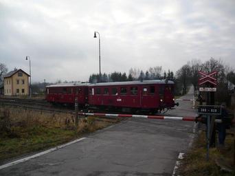| Keywords: M131 level crossing Zacler.jpg en Level crossing in Královec own JanSuchy 2010-11-20 50 40 15 882 N 15 58 6 499 E heading W Královec train station Level crossings in Hradec Králové Region Level crossing barriers in the Czech Republic ČSD Class M 131 1 Královec |