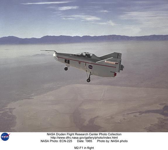 Keywords: M2-F1 in flight DVIDS709136.jpg en The M2-F1 Lifting Body is seen here under tow high above Rogers Dry Lake near the Flight Research Center later redesignated the Dryden Flight Research Center Edwards California R Dale Reed effectively advocated the project with the support of NASA research pilot Milt Thompson Together they gained the support of Flight Research Center Director Paul Bikle After a six-month feasibility study Bikle gave approval in the fall of 1962 for the M2-F1 to be built The wingless lifting body aircraft design was initially concieved as a means of landing an aircraft horizontally after atmospheric reentry The absence of wings would make the extreme heat of re-entry less damaging to the vehicle In 1962 Flight Research Center management approved a program to build a lightweight unpowered lifting body as a prototype to flight test the wingless concept It would look like a flying bathtub and was designated the M2-F1 the M referring to manned and F referring to flight version It featured a plywood shell placed over a tubular steel frame crafted at Dryden Construction was completed in 1963 The first flight tests of the M2-F1 were over Rogers Dry Lake at the end of a tow rope attached to a hopped-up Pontiac convertible driven at speeds up to about 120 mph These initial tests produced enough flight data about the M2-F1 to proceed with flights behind a NASA C-47 tow plane at greater altitudes The C-47 took the craft to an altitude of 12 000 where free flights back to Rogers Dry Lake began Pilot for the first series of flights of the M2-F1 was NASA research pilot Milt Thompson Typical glide flights with the M2-F1 lasted about two minutes and reached speeds of 110 to l20 mph More than 400 ground tows and 77 aircraft tow flights were carried out with the M2-F1 The success of Dryden's M2-F1 program led to NASA's development and construction of two heavyweight lifting bodies based on studies at NASA's Ames and Langley research centers--the M2-F2 and the HL-10 both built by the Northrop Corporation and the U S Air Force's X-24 program The Lifting Body program also heavily influenced the Space Shuttle program The M2-F1 program demonstrated the feasibility of the lifting body concept for horizontal landings of atmospheric entry vehicles It also demonstrated a procurement and management concept for prototype flight research vehicles that produced rapid results at very low cost approximately 50 000 excluding salaries of government employees assigned to the project NASA Identifier NIX_ECN-225 2009-12-10 Glenn Research Center https //www dvidshub net/image/709136 709136 2012-10-10 16 33 WASHINGTON DC US PD-USGov NASA M2-F1 Images from DoD uploaded by Fæ |