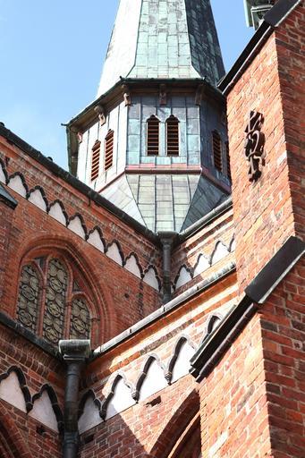 Keywords: münster tower building christian faith steeple house of worship grevesmühlen brick summer church perspective