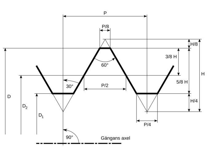 | Keywords: M-gänga.svg M-gänga ISO-metric screw thread Source this is a Swedish translation of Image ISO-metric-thread svg at Wikimedia Commons Date 14 may 2007 Author en User Markus Kuhn translated by User NH Uploaded here by NH 14 58 14 May 2007 UTC 2007-05-14 own assumed NH NH 14 58 14 May 2007 UTC Drawings of threads ISO metric screw thread |