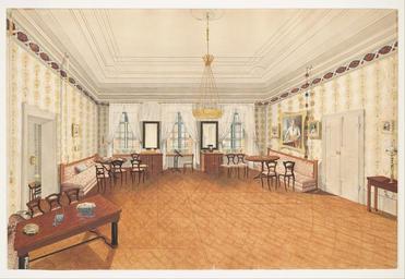 | Keywords: M. Sekim - A Room in the Governor's Residence, Hermannstadt - Google Art Project.jpg M 6842404 Sekim /collection/cooper-hewitt-national-design-museum/artwork/a-room-in-the-governors-residence-hermannstadt-m-sekim/6836623/ 229929 M Sekim /artist/m-sekim/12690734/ 12690734 /collection/cooper-hewitt-national-design-museum/ Cooper-Hewitt National Design Museum 3644669 http //www cooperhewitt org/ 3/12/2012 5 37 43 PM /collection/cooper-hewitt-national-design-museum/artwork/a-room-in-the-governors-residence-hermannstadt-m-sekim/6836623/ 1841 1841 Brush and watercolor and gouache with accents of gold paint Eugene V Thaw Collection; York House New York 1987 6836623 False 1841 3/25/2012 1 06 16 PM 2007-27-32 http //collection cooperhewitt org/view/objects/asitem/id/229929 Thaw Collection Drawing 1840 1850 1841 False 1 45042492917847 Object a-room-in-the-governors-residence-hermannstadt-m-sekim A Room in the Governor's Residence Hermannstadt a Gail S Davidson et al House Proud Nineteenth-century Watercolor Interiors from the Thaw Collection New York Cooper-Hewitt National Design Museum Smithsonian Institution 2008 103 pl 32 Charlotte Gere an Album of Nineteenth-Century Interiors Watercolors from Two Private Collections New York The Frick Collection 1992 60-61 Illus Charlotte Gere Nineteenth-Century Decoration The Art of the Interior New York Harry N Abrams Inc 1989 192-193 Illus Frame H x W x D 44 8 x 60 3 x 2 5 cm 17 5/8 x 23 3/4 x 1 in Sheet 33 4 x 50 2 cm 13 1/8 x 19 3/4 in New York NY Cooper-Hewitt National Design Museum Smithsonian Institution House Proud Nineteenth-Century Watercolor Interiors from the Thaw Collection August 12 2008-January 25 2009 Oneonta NY 18th and 19th Century Watercolors of European Domestic Interiors 1987 No 13 On reverse Salon der Grosseltern Wernhardt/ in Hermannstadt 1835 Paul Freiherr von Wernhardt Gouverneur von Siebenburgen Brush and watercolor and gouache with accents of gold paint Eugene V Thaw Collection; York House New York 1987 Mid-center right M Sekim/ 841 special url_id iQGhTGZABPwzrw PD-old-70 Google Art Project works by M Sekim Watercolors of building interiors in the Cooper “Hewitt Smithsonian Design Museum Google Art Project works in Cooper-Hewitt Smithsonian Design Museum Buildings in Sibiu 1840s interiors in art |