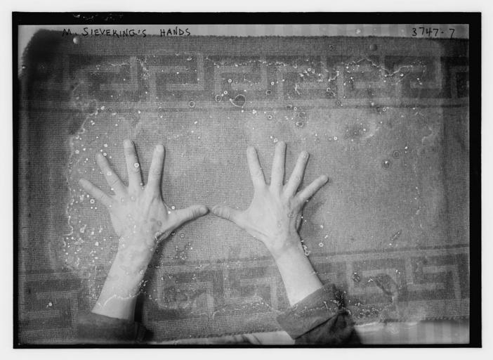| Keywords: M. Sievekings hands (LOC) (10609176864).jpg Bain News Service publisher M Sieveking's hands between ca 1915 and ca 1920 1 negative glass ; 5 x 7 in or smaller Notes Title from unverified data provided by the Bain News Service on the negatives or caption cards Forms part of George Grantham Bain Collection Library of Congress Format Glass negatives Rights Info No known restrictions on publication Repository Library of Congress Prints and Photographs Division Washington D C 20540 USA http //hdl loc gov/loc pnp/pp print hdl loc gov/loc pnp/pp print General information about the Bain Collection is available at http //hdl loc gov/loc pnp/pp ggbain hdl loc gov/loc pnp/pp ggbain Higher resolution image is available Persistent URL http //hdl loc gov/loc pnp/ggbain 20999 hdl loc gov/loc pnp/ggbain 20999 Call Number LC-B2- 3747-7 http //www flickr com/photos/library_of_congress/10609176864/ M Sieveking's hands LOC LOC-image ggbain 20999 Uploaded by palnatoke http //www flickr com/people/8623220 N02 The Library of Congress http //www loc gov/rr/print/195_copr html noknown The Library of Congress Flickr Commons PD-Bain File Upload Bot Magnus Manske 2013-11-06 Black and white photographs of Fingers Hands Martinus Sieveking |