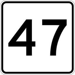 Keywords: MA Route 47.svg 600 mm by 600 mm 24 in by 24 in Massachusetts Route shield made to the specifications of the http //166 90 180 162/mhd/downloads/manuals/1996Mconst pdf 1996 edition of Construction and Traffic Standard Details sign M1-5 Uses the http //www triskele com/fonts/index html Roadgeek 2005 fonts United States law does not permit the copyrighting of typeface designs and the fonts are meant to be copies of a U S Government-produced work anyway The outside border has a width of 1 1 mm and a color of black so it shows up; in reality signs have no outside border The specs actually do not show the curve on the outside border instead making it a perfect square but all signs I have seen round the corners own SPUI spuiother Diagrams of Massachusetts Route shields Massachusetts Route 47