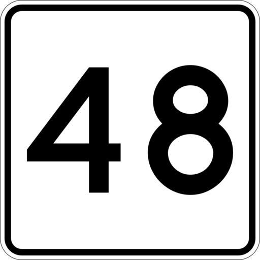 | Keywords: MA Route 48.svg 600 mm by 600 mm 24 in by 24 in Massachusetts Route shield made to the specifications of the http //166 90 180 162/mhd/downloads/manuals/1996Mconst pdf 1996 edition of Construction and Traffic Standard Details sign M1-5 Uses the http //www triskele com/fonts/index html Roadgeek 2005 fonts United States law does not permit the copyrighting of typeface designs and the fonts are meant to be copies of a U S Government-produced work anyway The outside border has a width of 1 1 mm and a color of black so it shows up; in reality signs have no outside border The specs actually do not show the curve on the outside border instead making it a perfect square but all signs I have seen round the corners own SPUI spuiother Diagrams of Massachusetts Route shields |
