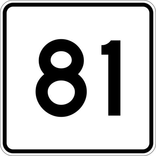| Keywords: MA Route 81.svg 600 mm by 600 mm 24 in by 24 in Massachusetts Route shield made to the specifications of the http //166 90 180 162/mhd/downloads/manuals/1996Mconst pdf 1996 edition of Construction and Traffic Standard Details sign M1-5 Uses the http //www triskele com/fonts/index html Roadgeek 2005 fonts United States law does not permit the copyrighting of typeface designs and the fonts are meant to be copies of a U S Government-produced work anyway The outside border has a width of 1 1 mm and a color of black so it shows up; in reality signs have no outside border The specs actually do not show the curve on the outside border instead making it a perfect square but all signs I have seen round the corners own SPUI spuiother Diagrams of Massachusetts Route shields |