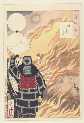 Keywords: Maan in rook-Rijksmuseum RP-P-1983-390.jpeg accession number RP-P-1983-390 Tsukioka Yoshitoshi; Tsukioka Yoshitoshi died 1892; Yamamoto Shinji; Akiyama Buemon credit line nl Brandweerman met vaandel staand bij felle brand; op de achtergrond het silhouet van een tweede brandweerman met vaandel staand op de nok van een huis waarvan twee mannen de dakbedekking verwijderen om verspreiding van het vuur tegen te gaan Label Line mentioned on object Tsukioka Yoshitoshi 1839 - 1892 1886 kleurenhoutsnede; lijnblok in zwart met kleurblokken; blinddruk; gofun Collection prenten; Japan collectie blad Height mm 356 blad Width mm 242 exhibition history paper object history Acquisition 1983 object type PD-US PD-old Data and photography rights All data and all images made available through the API are either in the public domain or are subject to a CC0 license https //www rijksmuseum nl/en/api/terms-and-conditions-of-use cc-zero place of creation Japan; Tokyo http //www rijksmuseum nl/collectie/RP-P-1983-390 http //hdl handle net/10934/RM0001 COLLECT 47332 handle Maan in rook Uploaded with GWToolset Rijksmuseum RP-P-1983-390 http //www rijksmuseum nl/media/assets/RP-P-1983-390 Images uploaded by Fæ Japanese 19th-century prints in the Rijksmuseum Amsterdam Images from the Rijksmuseum |