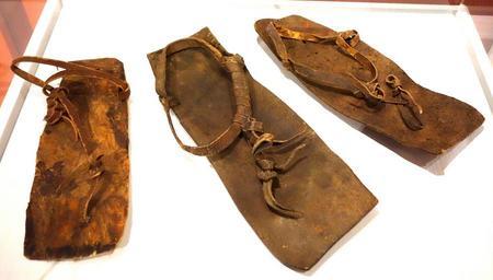 Keywords: Maasai sandals, 1951, rawhide - Bata Shoe Museum - DSC00368.JPG en Exhibit in the Bata Shoe Museum Toronto Ontario Canada The museum permitted photography without restriction 2013-07-04 10 59 14 own Daderot cc-zero Uploaded with UploadWizard Sandals in the Bata Shoe Museum Maasai |