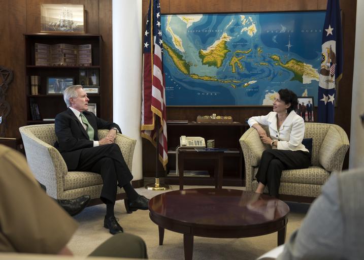 | Keywords: Mabus in Indonesia 150323-N-AC887-001.jpg en 150323-N-AC887-001 JAKARTA Indonesia March 23 2015 Secretary of the Navy SECNAV Ray Mabus meets with Kristen Bauer Deputy Chief of Mission at the U S Embassy in Jakarta Indonesia Mabus is in the region to meet with senior military and civilian officials to discuss bilateral and multilateral maritime security issues and efforts U S Navy photo by Chief Mass Communication Specialist Sam Shavers/Released 2015-03-22 20 00 00 https //www dvidshub net/image/1831830/mabus-indonesia Mabus in Indonesia Chief Mass Communication Specialist Sam Shavers U S Navy other versions PD-USGov-Military-Navy 150323-N-AC887-001 Navy Uploaded with UploadWizard Ray Mabus Kristen F Bauer |