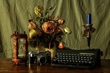 MAKE A MEME View Large Image machine photographic to write time texture flowers desk table
