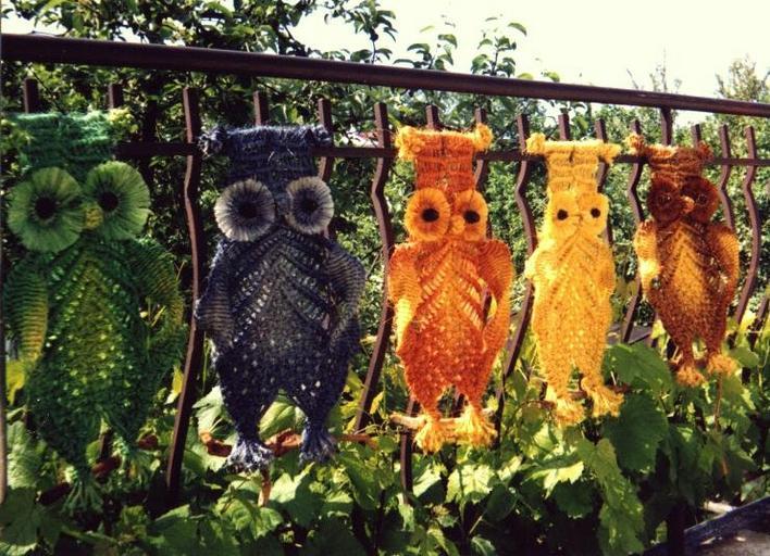 Keywords: Macrame Owls.jpg en Decorative macramé owls How do I get a pattern for these cute owl's Monika86g 2009-07-30 Macrame Crafts