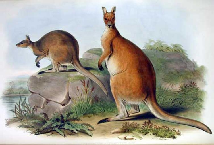 | Keywords: Macropus antilopinus Gould.jpg Antilope kangaroo Antilopine wallaroo Macropus antilopinus Mammals of Australia Vol II Plate 9 <br> http //museumvictoria com au/bioinformatics/mammals/images/Osp_anti htm 1863 Creator John Gould PD old PD-old-100 Macropus antilopinus The Mammals of Australia John Gould |