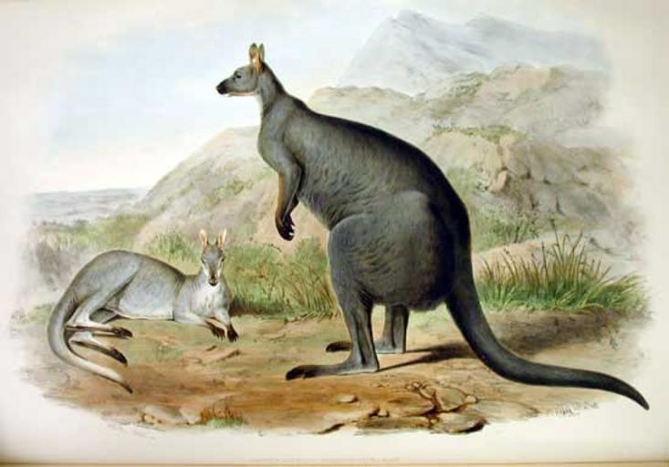 | Keywords: Macropus robustus 2 Gould.jpg  Macropus robustus Mammals of Australia Vol II Plate 11 <br> http //www museum vic gov au/bioinformatics/mammals/images/Osp_robu htm 1863 Creator John Gould domaine public en raison de l'âge PD-old-100 Kangaroos in art Macropus robustus The Mammals of Australia John Gould  |