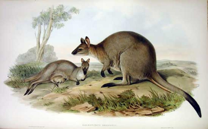 Keywords: Macropus rufogriseus 3 Gould.jpg Macropus rufogriseus ex Halmaturus bennetti Mammals of Australia Vol II Plate 17 <br> http //www museum vic gov au/bioinformatics/mammals/images/Hal_benn htm 1863 Creator John Gould PD-old-100 Kangaroos in art Macropus rufogriseus The Mammals of Australia John Gould |
