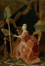 Keywords: Madame Victoire by Aubry.jpg Artwork Creator Étienne Aubry 1773 Oil on canvas cm 263 177 Institution Versailles Chambre de Madame Adélaïde du Château de Versailles http //doudou gheerbrant com/ cat 8 paged 3 image http //berdom skyrock com/1227351454-Rez-de-chaussee-Aile-centrale-Appartement-de-madame-Adelaide-77 html info other versions PD-old-100 DEFAULTSORT 1773; Victoire of France Étienne Aubry Princess Victoire of France 18th-century portrait paintings in the Musée national du Château de Versailles Chambre de Madame Adélaïde du Château de Versailles Madame_Victoire 1773 oil on canvas paintings in France 1773 portrait paintings from France 18th-century oil portraits of sitting women at full length 18th-century portrait paintings in interiors Busts in portrait paintings Busts of Louis XV of France Chairs in portrait paintings Columns in portrait paintings Black drapery in portrait paintings Female portraits with harps Females with chokers in art Females with red dresses in art Music in 1773 Portraits with image of family member 1770s dresses Paintings of sitting women playing musical instruments indoors