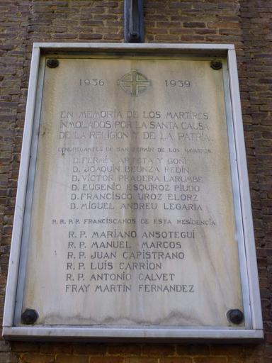 | Keywords: Madrid - Iglesia de San Fermín de los Navarros 06.jpg  es Iglesia de San Fermín de los Navarros Madrid 2013-10-16 23 56 46 own Zarateman cc-zero Church of San Fermín de los Navarros Uploaded with UploadWizard Monuments and memorials to the fallen of the Nationalist faction in the Spanish Civil War Symbols of Francoism in Madrid |