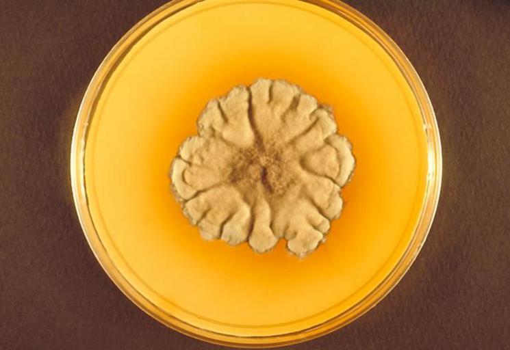 Keywords: Madurella grisea PHIL 4158 lores.jpg This image shows a plate culture growing the fungus Madurella grisea Georgia isolate Some Madurella spp are a cause of mycetoma a fungal infection characterized by sclerotia or large black masses of hyphae The fungus enters the human body via trauma which usually affects the foot This disease process may take several years Content Providers s CDC/Dr Libero Ajello Creation Date 1970 Copyright Restrictions None - This image is in the public domain and thus free of any copyright restrictions As a matter of courtesy we request that the content provider be credited and notified in any public or private usage of this image http //phil cdc gov/phil_images/20030716/45/PHIL_4158_lores jpg PD-USGov Madurella grisea Petri dishes cultures