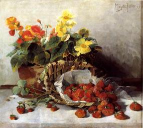 | Keywords: Magda Kroener Stillleben.jpg Oil canvas cm 45 51 object history credit line signiert oben rechts Magda Kröner accession number PD-old 20th-century still life paintings of fruit baskets Strawberries in art Paintings with signatures Still life paintings of flowers Location of museum or gallery missing Paintings not categorised by year |