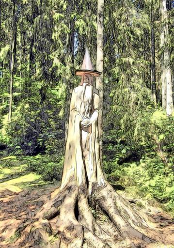 Keywords: magician merlin drawing forest black forest magic forest magic fairy tales fairy tale forest log wood carving