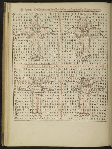 | Keywords: rabanus maurus rabanusmaurus johann reuchlin johannreuchlin sebastian brandt sebastianbrandt jaco wimpheling jacowimpheling leo baeck institute leobaeckinstitute jewish jews indoor monochrome Description: The author of these poems, Rabanus Maurus (784?-856), the Archbishop of Mainz, compiled an early encyclopaedia, wrote commentaries on the Bible, and devised a complicated system of coded poetry. Magnencij Rabani Mauri De Laudib[us] sancte Crucis opus begins with an introduction by the German humanist, writer, and theologian Jakob Wimpheling (dated 1501) and includes 30 full-page poems printed in red and black and combining woodcut and letterpress. The poems are followed by a transcript in ordinary type for the sake of clarity and a Declaratio explaining the whole arrangement. The encrypted poems are composed in a grid of 36 lines each containing 36 letters. Rabanus sometimes incorporated a figure within the grid, creating both a figurative and a literal picture poem. It continues a late classical tradition in its form: it consists of &quot;carmina figurata&quot; where figures were superimposed on the text so that new verses appear, and these verses have a new meaning. Gustav Mahler composed his 8th symphony around one of Rabanus’s poems (Source: University Library Princeton blogs.princeton.edu/graphicarts/2008/05/rabanus_maurus_ar.... Wimpheling was a contemporary of Johannes Reuchlin. There exists a letter written by Mutianus Rufus to Reuchlin in which the printer's achievement is praised in glowing terms; Reuchlin's cooperation and help in the production must have been considerable (Source: H. Alberts in Johannes Reuchlin Festschrift, 1955, p. 208) Read the entire book Creator: Rabanus Maurus,, Archbishop of Mainz,, 784?-856 Creator: Wimpheling, Jakob, 1450-1528 Creator: Brant, Sebastian, 1458-1521 Creator: Reuchlin, Johann, 1455-1522 Creator: Anshelm, Thomas Object Origin: Pforzheim Date: 1503 Persistent URL: digital.cjh.org/R/?func=dbin-jump-full&amp;object_id=432344 Repository: Leo Baeck Institute, 15 West 16th Street, New York, NY 10011 Call Number: r (f) 80 Herz R 10 Rights Information: No known copyright restrictions; may be subject to third party rights. For more copyright information, click here. See more information about this image and others at CJH Digital Collections. Digital images created by the Gruss Lipper Digital Laboratory at the Center for Jewish History Description: The author of these poems, Rabanus Maurus (784?-856), the Archbishop of Mainz, compiled an early encyclopaedia, wrote commentaries on the Bible, and devised a complicated system of coded poetry. Magnencij Rabani Mauri De Laudib[us] sancte Crucis opus begins with an introduction by the German humanist, writer, and theologian Jakob Wimpheling (dated 1501) and includes 30 full-page poems printed in red and black and combining woodcut and letterpress. The poems are followed by a transcript in ordinary type for the sake of clarity and a Declaratio explaining the whole arrangement. The encrypted poems are composed in a grid of 36 lines each containing 36 letters. Rabanus sometimes incorporated a figure within the grid, creating both a figurative and a literal picture poem. It continues a late classical tradition in its form: it consists of "carmina figurata" where figures were superimposed on the text so that new verses appear, and these verses have a new meaning. Gustav Mahler composed his 8th symphony around one of Rabanus’s poems (Source: University Library Princeton blogs.princeton.edu/graphicarts/2008/05/rabanus_maurus_ar.... Wimpheling was a contemporary of Johannes Reuchlin. There exists a letter written by Mutianus Rufus to Reuchlin in which the printer's achievement is praised in glowing terms; Reuchlin's cooperation and help in the production must have been considerable (Source: H. Alberts in Johannes Reuchlin Festschrift, 1955, p. 208) Read the entire book Creator: Rabanus Maurus,, Archbishop of Mainz,, 784?-856 Creator: Wimpheling, Jakob, 1450-1528 Creator: Brant, Sebastian, 1458-1521 Creator: Reuchlin, Johann, 1455-1522 Creator: Anshelm, Thomas Object Origin: Pforzheim Date: 1503 Persistent URL: digital.cjh.org/R/?func=dbin-jump-full&object_id=432344 Repository: Leo Baeck Institute, 15 West 16th Street, New York, NY 10011 Call Number: r (f) 80 Herz R 10 Rights Information: No known copyright restrictions; may be subject to third party rights. For more copyright information, click here. See more information about this image and others at CJH Digital Collections. Digital images created by the Gruss Lipper Digital Laboratory at the Center for Jewish History <strong>Description: </strong>The author of these poems, Rabanus Maurus (784?-856), the Archbishop of Mainz, compiled an early encyclopaedia, wrote commentaries on the Bible, and devised a complicated system of coded poetry. Magnencij Rabani Mauri De Laudib[us] sancte Crucis opus begins with an introduction by the German humanist, writer, and theologian Jakob Wimpheling (dated 1501) and includes 30 full-page poems printed in red and black and combining woodcut and letterpress. The poems are followed by a transcript in ordinary type for the sake of clarity and a Declaratio explaining the whole arrangement. The encrypted poems are composed in a grid of 36 lines each containing 36 letters. Rabanus sometimes incorporated a figure within the grid, creating both a figurative and a literal picture poem. It continues a late classical tradition in its form: it consists of "carmina figurata" where figures were superimposed on the text so that new verses appear, and these verses have a new meaning. Gustav Mahler composed his 8th symphony around one of Rabanus’s poems (Source: University Library Princeton <a href="http://blogs.princeton.edu/graphicarts/2008/05/rabanus_maurus_archbishop_of_m.html" rel="nofollow">blogs.princeton.edu/graphicarts/2008/05/rabanus_maurus_ar...</a>.