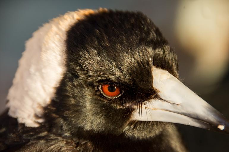 Keywords: magpie australian magpie beak bird black white portrait face wild queensland australia