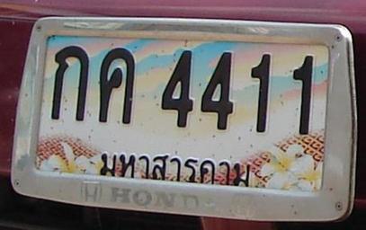 | Keywords: Mahasarakham plate.jpg หนึ่งในหลายป้ายทะ บียน ลขสวย ที่มีการประมูล จาก จ มหาสารคาม auctioned plate from Maha Sarakham Thailand ไม่ใช่ป้ายของข้าพ จ้า - ไม่ทราบ จ้าของ - This is not my plates The auction plates/numbers are movable to an another car own original text self-made ถ่ายโดย ู้อัพโหลด 1 Love Krittaya License plates of Thailand Maha Sarakham Province 4411 number |