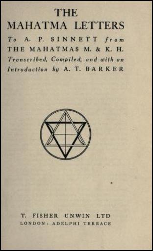 | Keywords: Mahatmaletters.jpg en The Book The Mahatma Letters to A P Sinnett from the Mahatmas M K H 1923 ed title page 1923-12-01 The Book The Mahatma Letters to A P Sinnett from the Mahatmas M K H London 1923 A T Barker other versions PD-old Theosophy |